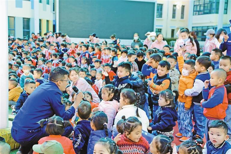 圖為消防工作人員講解消防安全知識(shí)。