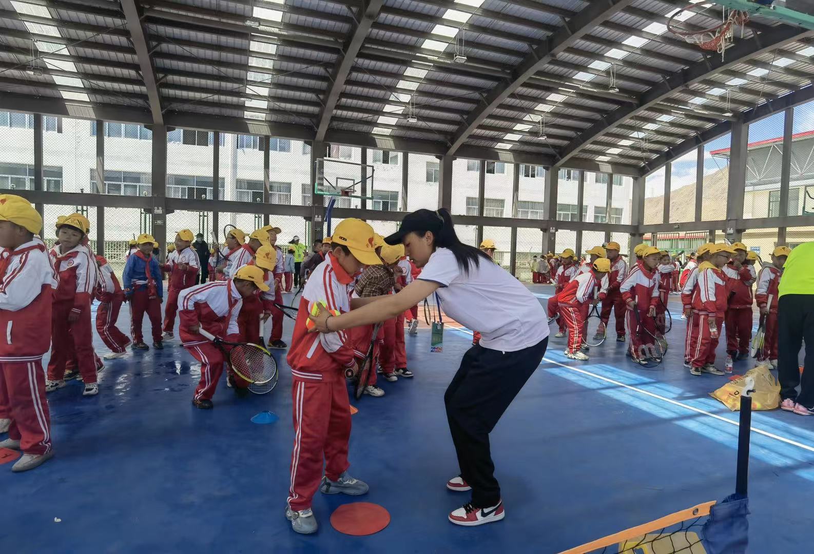圖為西藏自治區(qū)網(wǎng)球協(xié)會向?qū)W校師生捐贈網(wǎng)球裝備