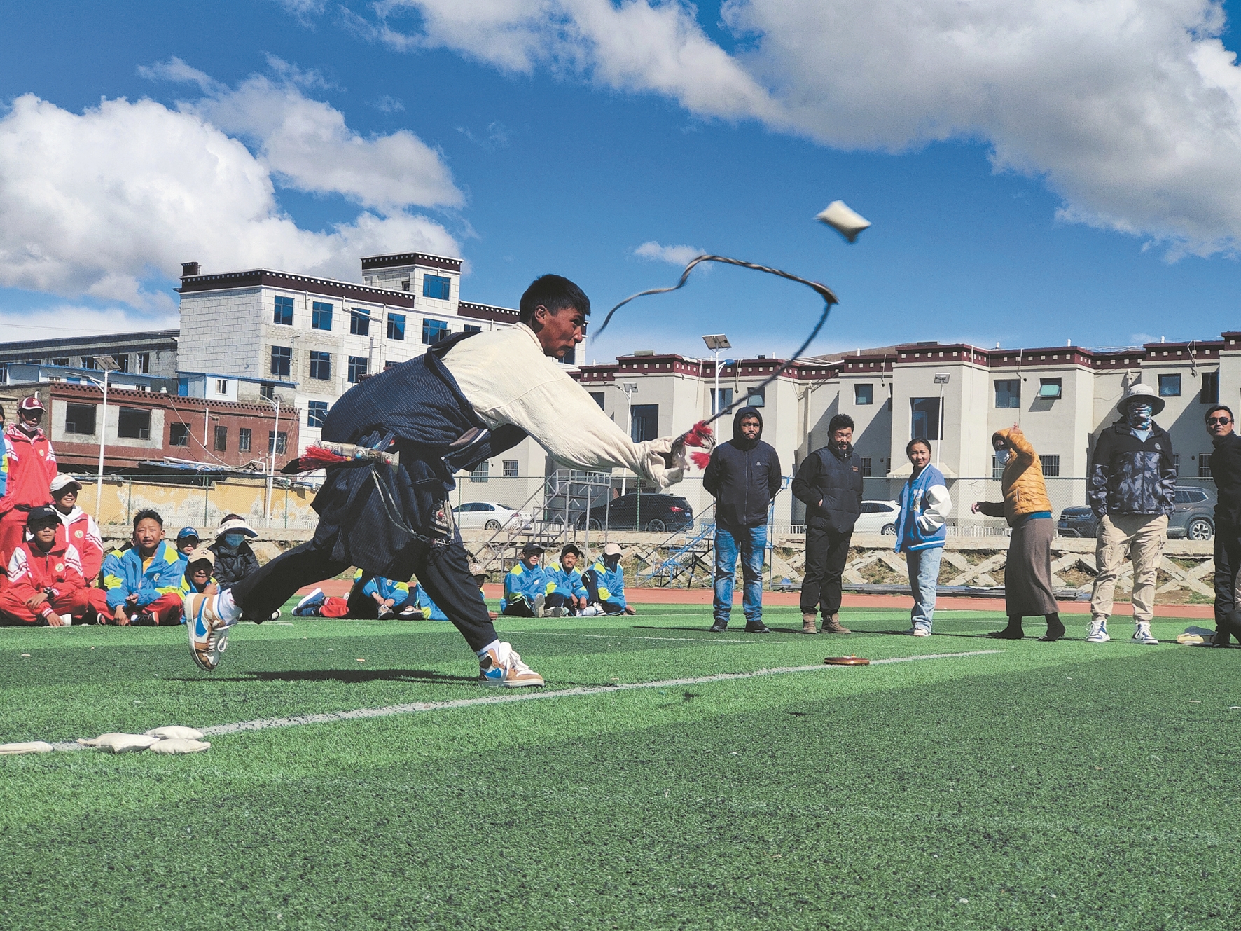 活動中,來自全縣中小學(xué)和幼兒園的學(xué)生分別參加了藏漢文書法、朗讀、歌舞、寫作、繪畫等比賽以及羊拐、“吾多”等傳統(tǒng)競技項目。比賽中學(xué)生們熱情激昂、各展身手,一個個朝氣蓬勃的身影、一件件獨具特色的作品,展現(xiàn)著牧區(qū)兒女拼搏上進(jìn)的精神風(fēng)貌?!拔以诩曳叛虻臅r候經(jīng)常用‘吾多’,沒想到今天能有展示這個技能的機(jī)會,非常高興?!薄拔岫唷眳①愡x手白瑪頓旦說。