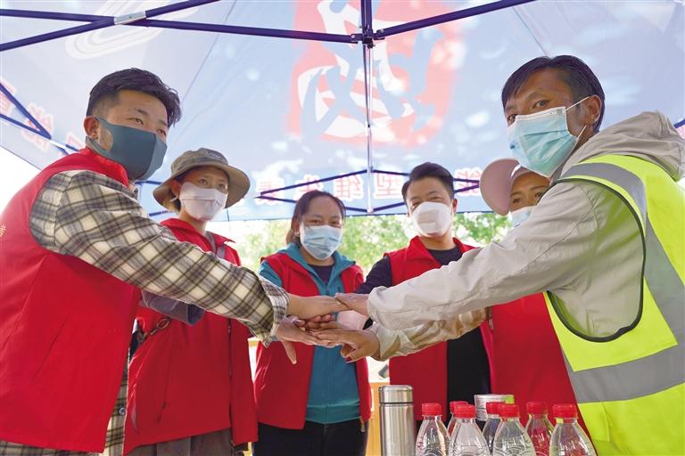 志愿者設(shè)置服務(wù)點(diǎn)提供幫助。文/記者 梁蘭 圖/記者 秦盼