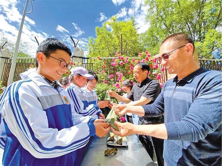 為弘揚(yáng)中華優(yōu)秀傳統(tǒng)文化,促進(jìn)漢藏文化交流,端午節(jié)期間,拉薩市第一中學(xué)教育援藏團(tuán)隊(duì)的老師為學(xué)生送上來(lái)自江蘇老家親人包的粽子。