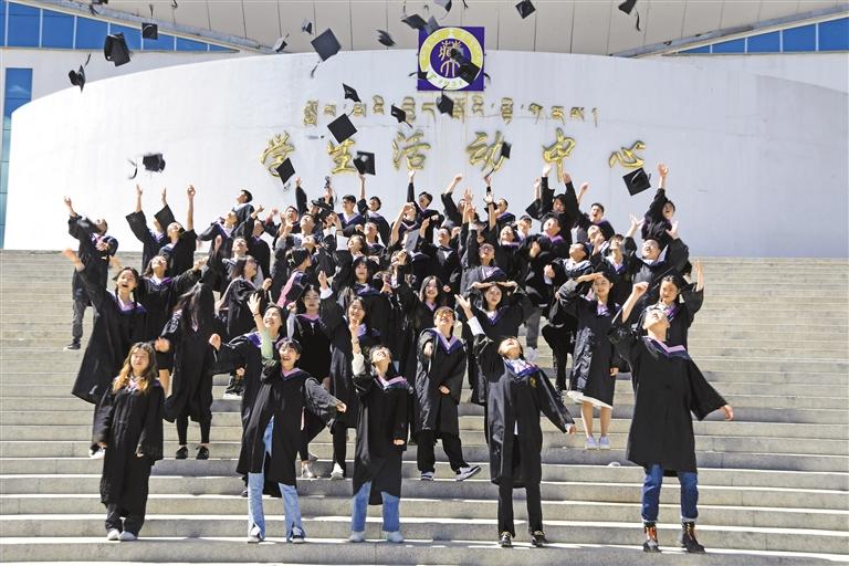 圖為西藏大學(xué)文學(xué)院本科畢業(yè)生在學(xué)校拍攝畢業(yè)照。記者 王敏 攝