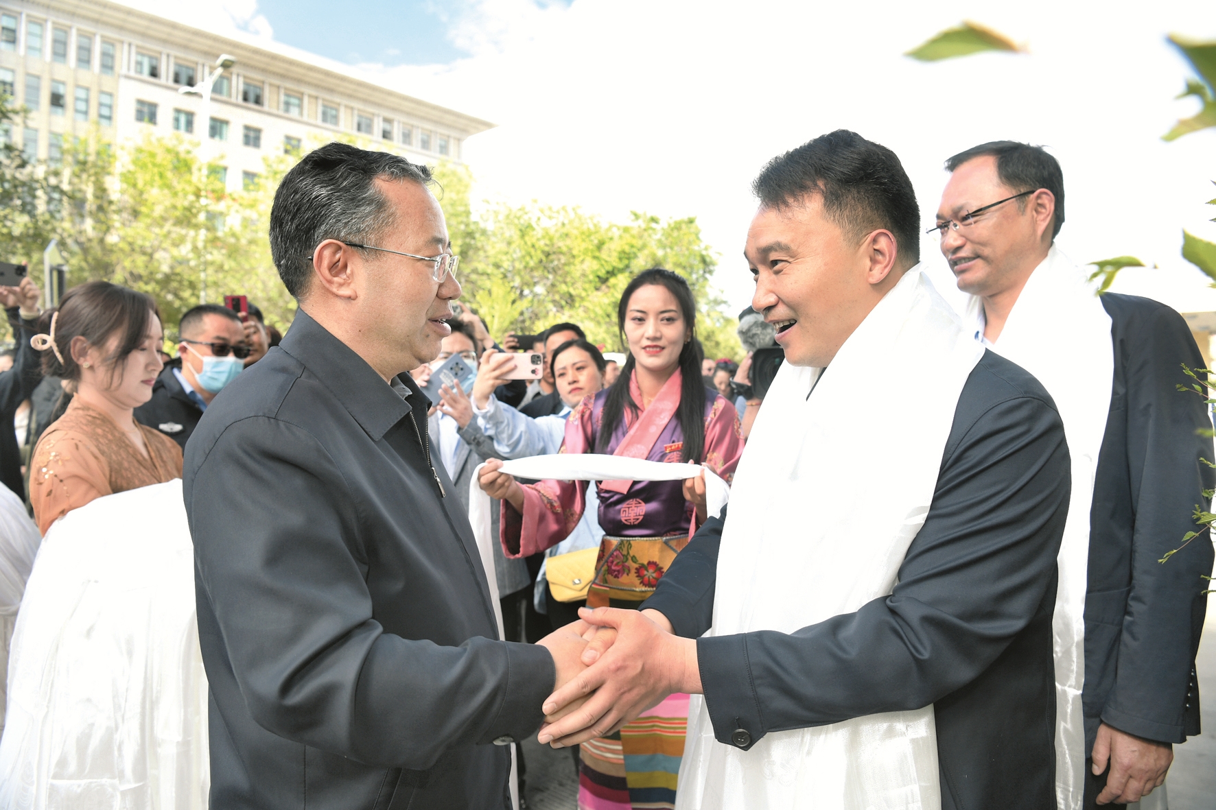 區(qū)黨委常委、市委書記普布頓珠,以及果果、陳靜、尼瑪、李忠海、普衛(wèi)東、張定成、王慧、張春陽(yáng)等拉薩市黨政軍領(lǐng)導(dǎo)和市(直)各單位、各縣(區(qū))干部職工自發(fā)來到援藏干部人才駐地、機(jī)場(chǎng),為即將離藏的江蘇省援藏干部人才送行,向大家獻(xiàn)上潔白的哈達(dá),祝福他們一路順風(fēng)、身體健康、工作順利、扎西德勒。