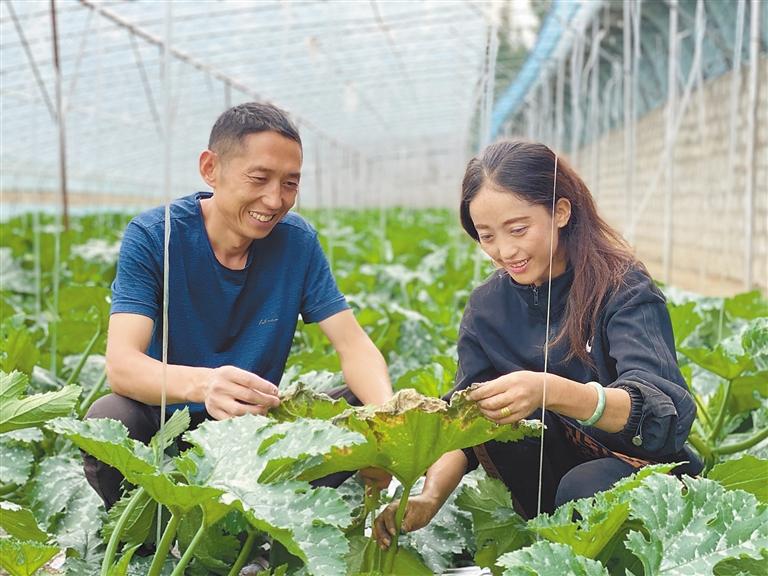 蘇州市援藏工作組通過(guò)智力支持與技術(shù)支援,助力林周縣構(gòu)建起完善的農(nóng)產(chǎn)品監(jiān)管體系。圖為在溫室大棚內(nèi)工作人員卓瑪(右)在學(xué)習(xí)種植知識(shí)。
