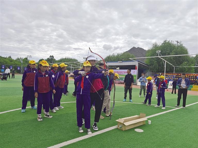 近日,由西藏自治區(qū)體育局主辦,自治區(qū)社體中心承辦,自治區(qū)馬術協(xié)會和曲水縣達嘎鎮(zhèn)小學協(xié)辦的2022年送民族傳統(tǒng)體育下基層活動走進拉薩市曲水縣達嘎鎮(zhèn)小學。校園操場上,學生們精神抖擻、全神貫注,立身對靶,手握弓把正中央,在老師的號令聲中,拉動弓弦,利箭破風而出,命中靶位……