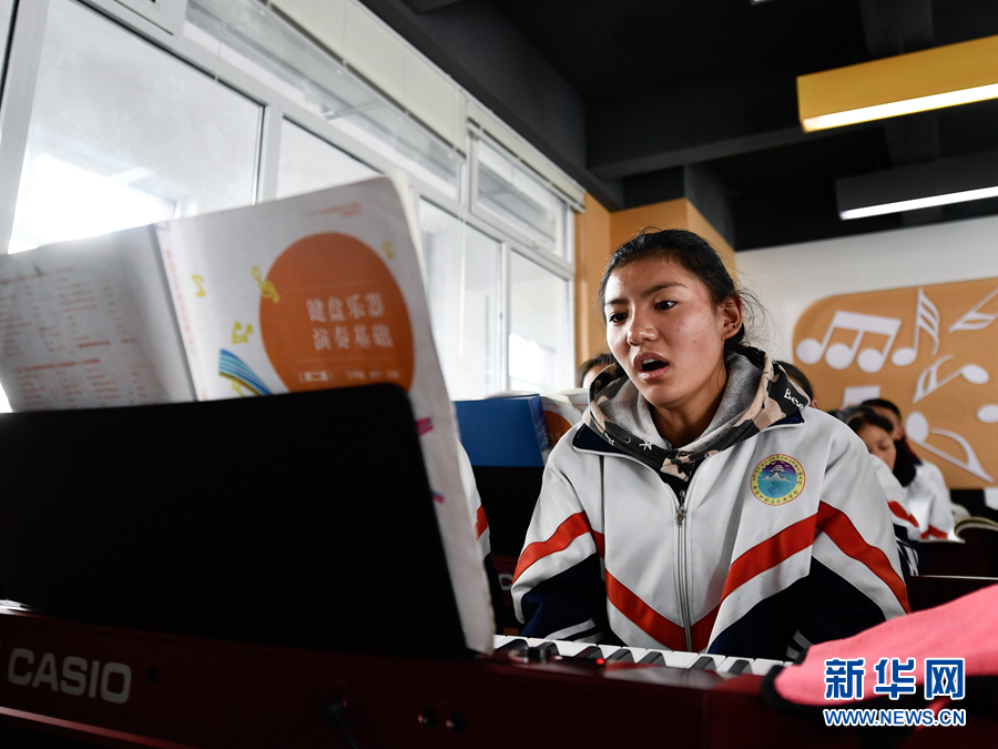 在果洛藏族自治州職業(yè)技術(shù)學(xué)校,2020級(jí)學(xué)前教育專業(yè)學(xué)生楊央在上音樂(lè)課。(資料圖)新華社記者 張龍 攝