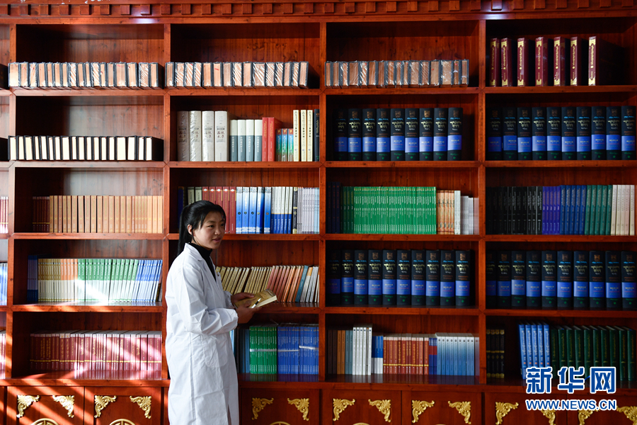 在果洛藏族自治州職業(yè)技術(shù)學(xué)校,2020級(jí)藏醫(yī)醫(yī)療與藏藥專業(yè)學(xué)生德吉在借閱書(shū)籍。(資料圖)新華社記者 張龍 攝