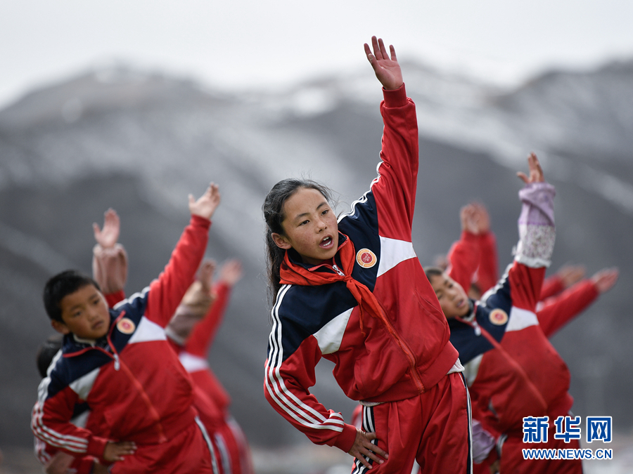 在果洛藏族自治州甘德縣下貢麻鄉(xiāng)寄宿制中心小學(xué),學(xué)生在上體育課。(資料圖)新華社記者 張龍 攝