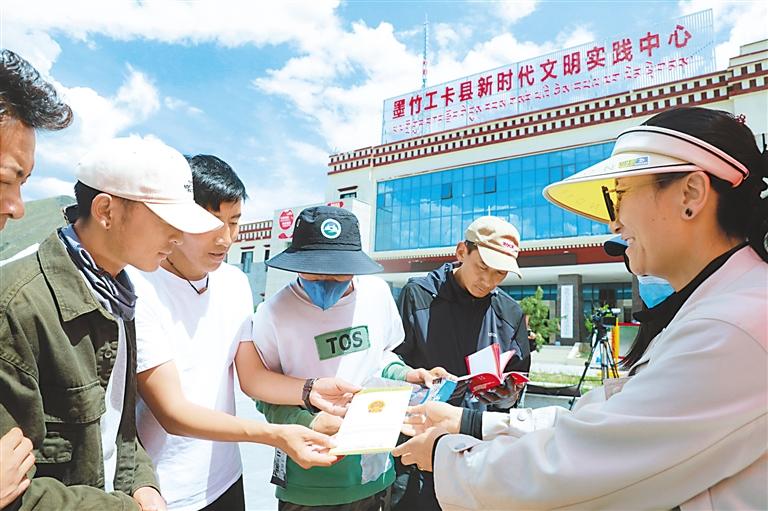 近日,墨竹工卡縣開展新時代文明實踐志愿服務活動。在活動現(xiàn)場,各參與單位為群眾發(fā)放宣傳手冊、書籍和雨傘、水杯等物品,向群眾宣傳講解相關知識,還以免費理發(fā)、免費修電腦等方式為現(xiàn)場群眾開展了送溫暖、送科技、送法律活動,進一步提高了群眾對各項政策的知曉度,豐富了群眾的文化生活。