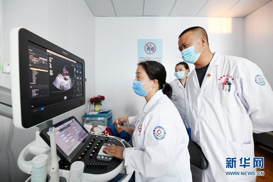 8月11日,在青海省玉樹藏族自治州治多縣人民醫(yī)院,北京援青醫(yī)療隊(duì)的專家們?yōu)楫?dāng)?shù)厍槿R縣、治多縣0-16歲先天性心臟病兒童開展篩查活動。