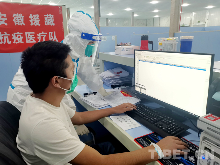 圖為才讓東主利用自身特長協(xié)助醫(yī)護(hù)人員完成信息錄入等工作