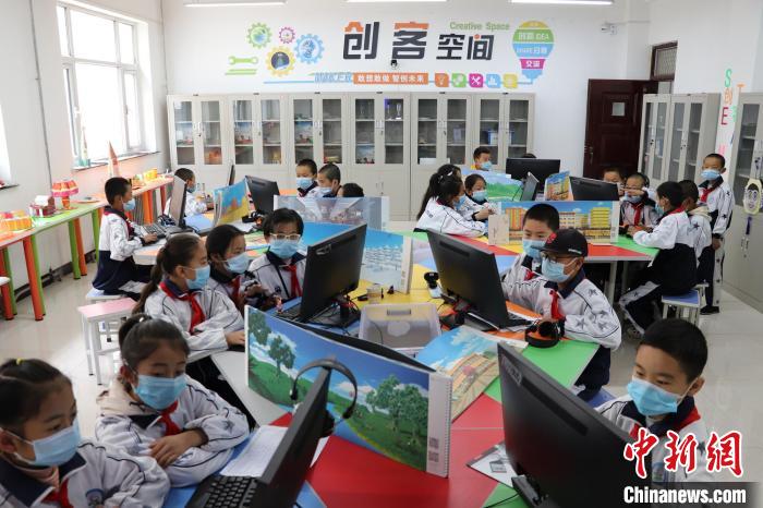 在天??h天師附小智慧教室內(nèi),農(nóng)牧區(qū)的孩童“觸網(wǎng)”感知外面的世界?!√熳?h委宣傳部供圖