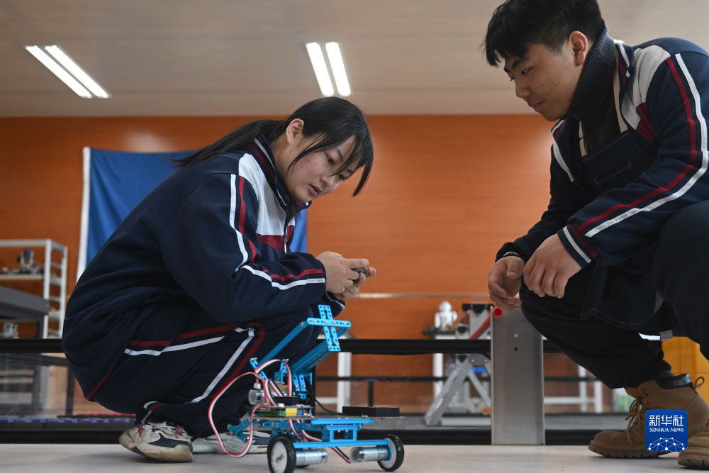 2月23日,西寧果洛中學(xué)學(xué)生在機(jī)器人教室內(nèi)操作自己組裝的機(jī)器人。新華社記者 張龍 攝