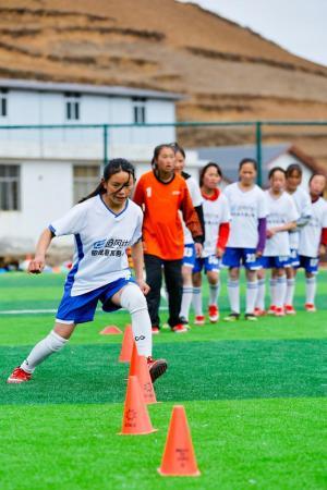 于是,2015年,瓦吾小學(xué)組建起第一支足球隊(duì),2018年又組建起女足球隊(duì)。沒(méi)有塑膠操場(chǎng),山路就是跑道;沒(méi)有裝備,就用廢舊輪胎進(jìn)行負(fù)重訓(xùn)練;即使遇到風(fēng)霜雨雪天氣,訓(xùn)練也不輕易間斷……現(xiàn)在學(xué)校超過(guò)半數(shù)的學(xué)生在踢球,已有38名女足隊(duì)員。