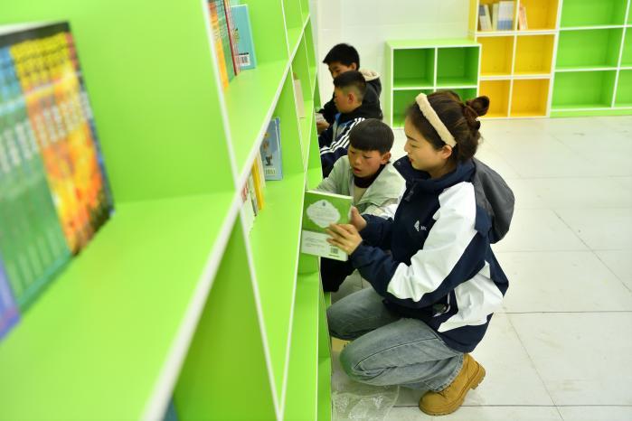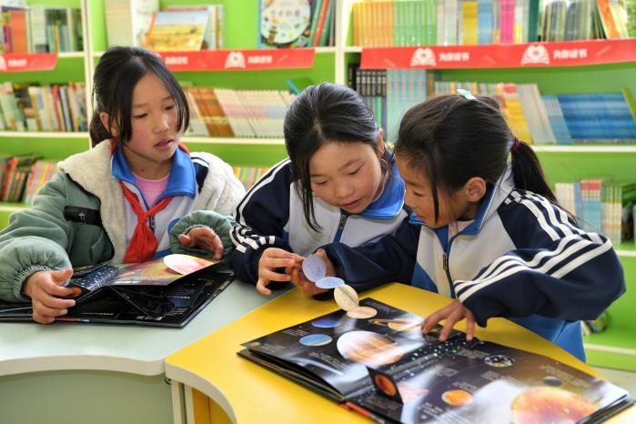 藥山鎮(zhèn)中心小學的同學們在新閱讀室閱讀新書。