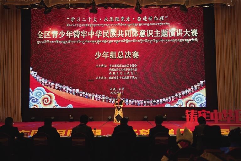4月7日,由共青團(tuán)西藏自治區(qū)委員會(huì)、西藏自治區(qū)民族事務(wù)委員會(huì)、自治區(qū)教育廳聯(lián)合主辦,西藏青少年實(shí)踐教育基地承辦的“學(xué)習(xí)二十大 永遠(yuǎn)跟黨走 奮進(jìn)新征程”全區(qū)青少年鑄牢中華民族共同體意識(shí)主題演講大賽總決賽在拉薩市舉行。現(xiàn)場(chǎng),記者了解到,此次大賽歷經(jīng)3個(gè)月時(shí)間,覆蓋全區(qū)7市(地)、7所高校、74個(gè)縣(區(qū))、740余個(gè)村(居)、140所中小學(xué),2000余名各族青少年積極參加各級(jí)預(yù)賽,其中58名優(yōu)秀青少年4月7日在拉薩市參加少年組、村居展示組和青年組三個(gè)組別的總決賽。