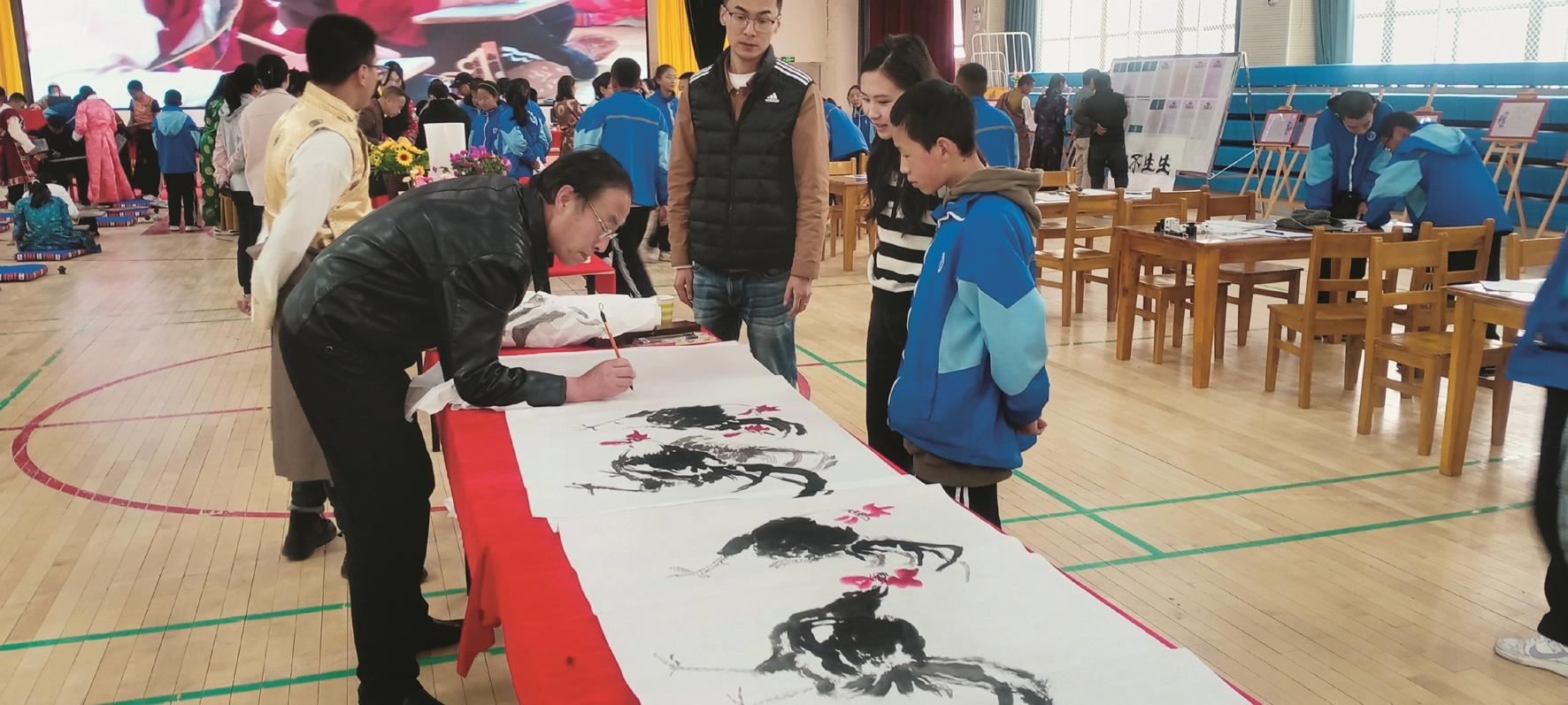 活動(dòng)為拉薩市柳梧初級(jí)中學(xué)愛(ài)好書法的師生提供了一個(gè)展現(xiàn)自我價(jià)值的平臺(tái),為充分展現(xiàn)中國(guó)書畫藝術(shù)魅力、繼承和弘揚(yáng)傳統(tǒng)的國(guó)粹文化藝術(shù),藝術(shù)家們揮毫潑墨,現(xiàn)場(chǎng)演繹國(guó)畫和書法經(jīng)典,以提升廣大師生的藝術(shù)修養(yǎng)和審美情趣,激發(fā)大家研學(xué)書法的興趣和愛(ài)好。