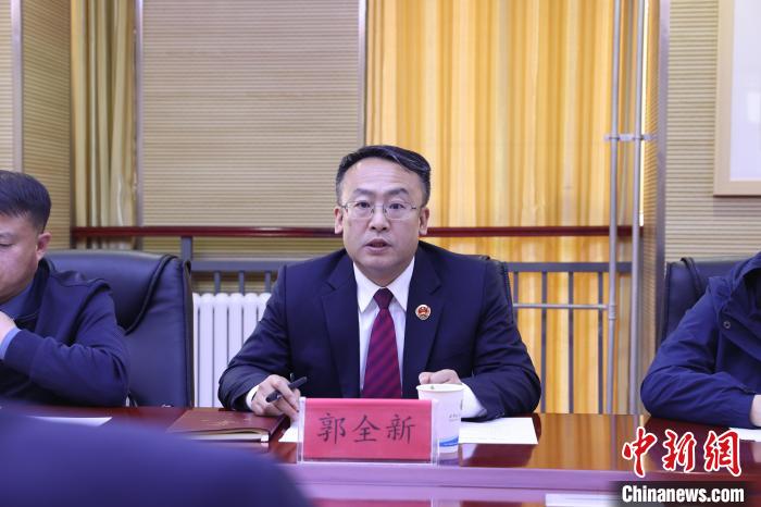 圖為青海省人民檢察院黨組成員、副檢察長(zhǎng)郭全新致辭?!∏嗪J∪嗣駲z察院供圖