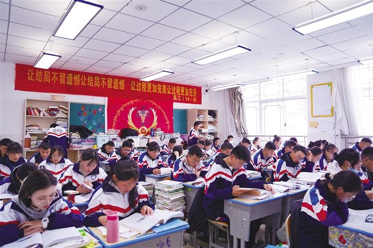高三教學(xué)樓,遠(yuǎn)遠(yuǎn)便聽見教室里傳來的朗朗書聲。課堂上,老師正耐心細(xì)致地講解著習(xí)題,同學(xué)們時而認(rèn)真聽講、奮筆疾書,時而相互討論、請教老師……大家神情堅毅、目光堅定,在各自的一方天地里埋頭苦學(xué),以最專注的態(tài)度為即將到來的人生大考做著準(zhǔn)備。“今年我們學(xué)校有660余名高三學(xué)生,現(xiàn)在大家都在進(jìn)行最后的沖刺,隨后還會進(jìn)行一次模擬考試?!崩_江蘇實驗中學(xué)高三年級部副主任張姣姣告訴記者,“今年是新課改的第一年,各學(xué)科老師都在盡心盡力幫助同學(xué)們查漏補缺,合理安排最后沖刺階段的學(xué)習(xí)時間,確保同學(xué)們能夠從容自信地踏入考場。”
