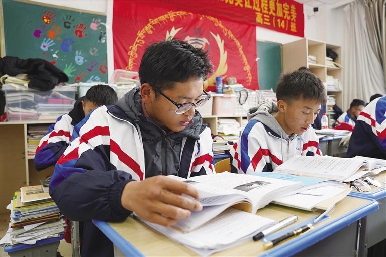 “叮鈴鈴”……隨著下課鈴聲響起,教室瞬間“熱鬧”了起來。有的同學(xué)走出教室活動久坐的身體、有的同學(xué)拿出習(xí)題冊和同桌小聲地討論、有的同學(xué)向老師請教不明白的知識點……清風(fēng)拂過,暖暖的陽光照在這些青春的身影上,演繹出一首屬于青春的奮斗頌歌?!艾F(xiàn)在是最緊要的關(guān)頭,必須把全部精力投入到學(xué)習(xí)中,爭取多掌握一些知識點。”高三12班學(xué)生索朗旦增說,“我的目標(biāo)是西南政法大學(xué),希望通過自己的努力能實現(xiàn)這個夢想?!?/p>
