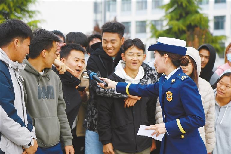 消防宣傳員在西藏大學開展消防安全有獎知識問答。