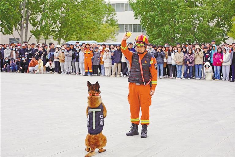 消防指戰(zhàn)員在西藏大學進行搜救犬表演。肖暄 攝