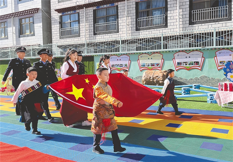 拉薩市實驗幼兒園東城分園舉行“唱國歌、升國旗”儀式。記者 旦增蘭澤 攝