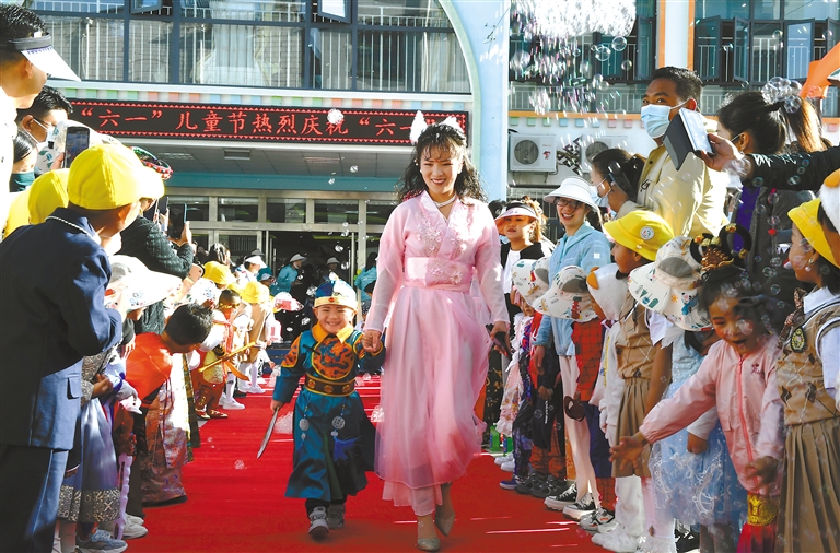 在第73個“六一”國際兒童節(jié),全區(qū)各中小學、幼兒園等組織開展了內(nèi)容豐富、形式多樣的慶?;顒樱尯⒆觽冊跉g樂有趣的活動中留下美好記憶、在快樂中茁壯成長。文藝匯演、親子互動、普法講座……豐富多彩的活動在全區(qū)各地“遍地開花”,無論是大型慶?;顒?,還是社區(qū)的親子活動,都傳遞著對孩子們快樂童年的祝福和關(guān)懷。