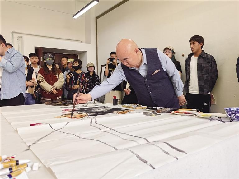 6月5日,由國(guó)家藝術(shù)基金支持,北京畫友藝術(shù)交流中心主辦的《意境》唐詩(shī)主題畫展在西藏大學(xué)藝術(shù)學(xué)院成功舉辦。此次主題畫展有賈平西、劉曦林、張松等20余位藝術(shù)家作品參展。中國(guó)藝術(shù)研究院文學(xué)藝術(shù)院專職畫家、國(guó)家一級(jí)美術(shù)師林維與南開大學(xué)藝術(shù)與美學(xué)研究院副院長(zhǎng)、博士生導(dǎo)師尹滄?,F(xiàn)場(chǎng)揮毫潑墨、即興發(fā)揮,給西藏大學(xué)獻(xiàn)上了兩幅圖。