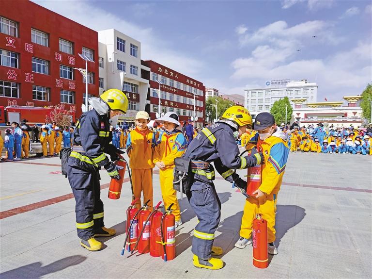近日,日喀則市減災委員會在日喀則市小學開展了“防災減災進校園”主題活動?;顒又?,消防指戰(zhàn)員向師生詳細講解了消防裝備用途和用法,并組織師生開展消防應急疏散演練。沉浸式、互動式、體驗式的防災減災宣傳,進一步增強了師生消防安全意識,提高了應急避險、自救互救能力。