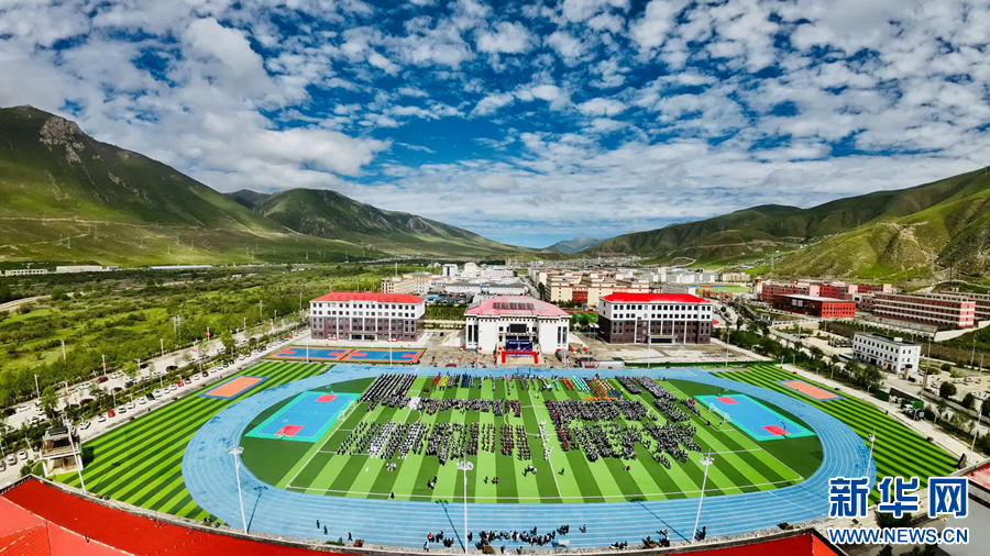 圖為青海省玉樹藏族自治州首屆“江源杯”校園足球聯(lián)賽開幕式現(xiàn)場。(2023年7月3日攝)(受訪單位供圖)