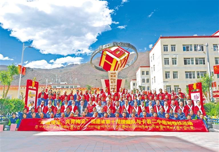 福建省第十批援藏工作隊(duì)與昌都市卡若區(qū)第二初級(jí)中學(xué)的結(jié)對(duì)幫扶學(xué)生合影留念。