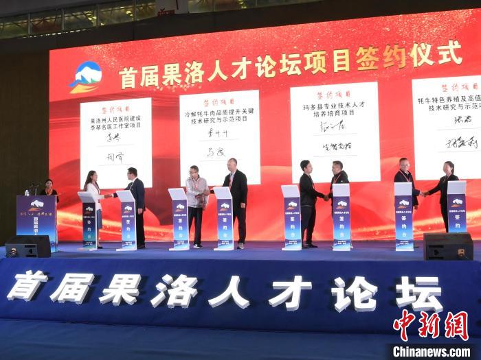 圖為首屆果洛人才論壇項(xiàng)目簽約儀式現(xiàn)場。果洛州委宣傳部供圖