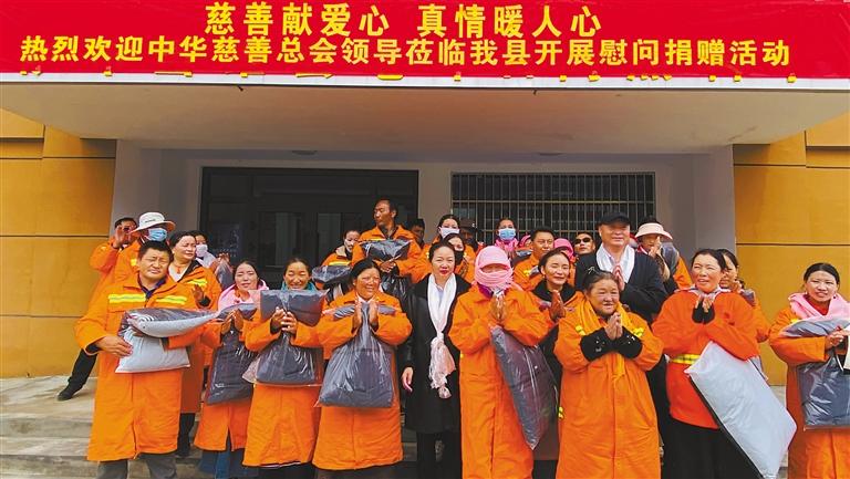 近日,中華慈善總會(huì)項(xiàng)目部工作人員來到拉薩市當(dāng)雄縣開展慰問捐贈(zèng)活動(dòng),為當(dāng)雄縣環(huán)衛(wèi)工人、納木錯(cuò)水廠工人送去121件保暖衣物。