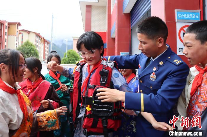 圖為消防員正在為學生普及防災(zāi)減災(zāi)知識。西繞拉翁 攝