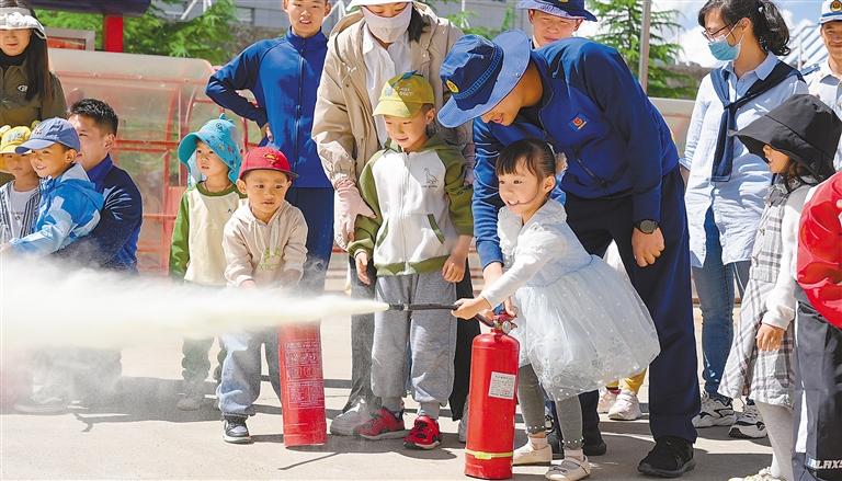 圖為小朋友在學(xué)習(xí)使用滅火器。肖暄 攝