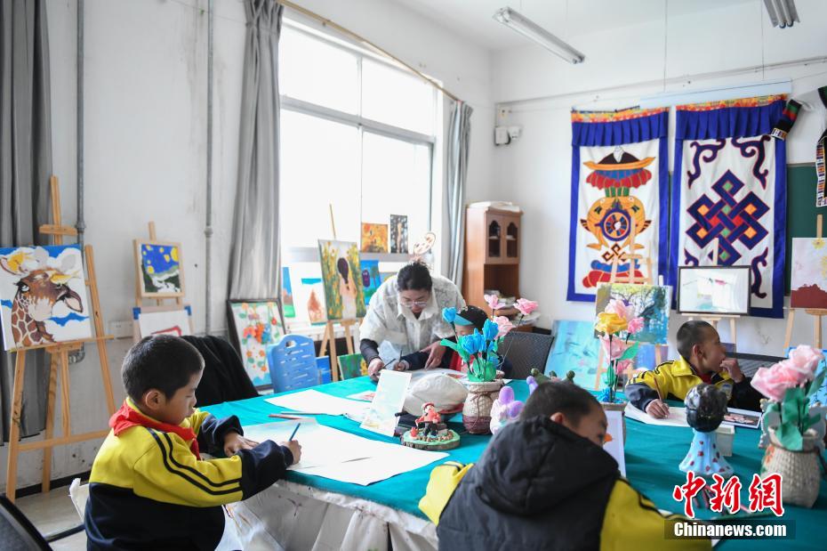 圖為那曲市特殊教育學校老師教學生畫畫。貢嘎來松 攝
