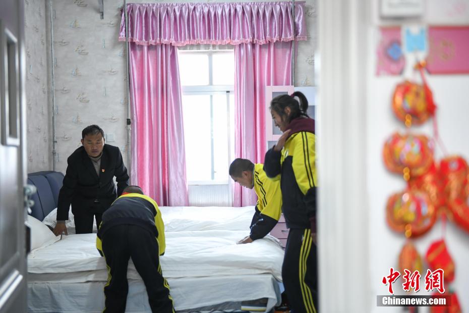 圖為那曲市特殊教育學校學生學習酒店服務。貢嘎來松 攝