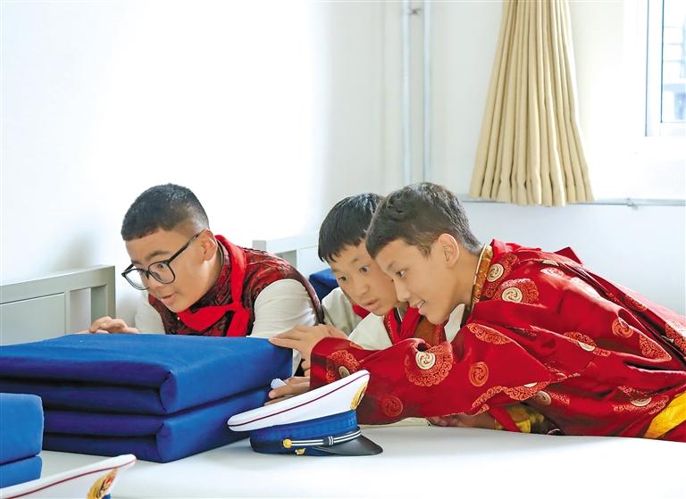 學生觀摩內(nèi)務被。記者 胡文 通訊員 西繞拉翁 袁勇彬 攝