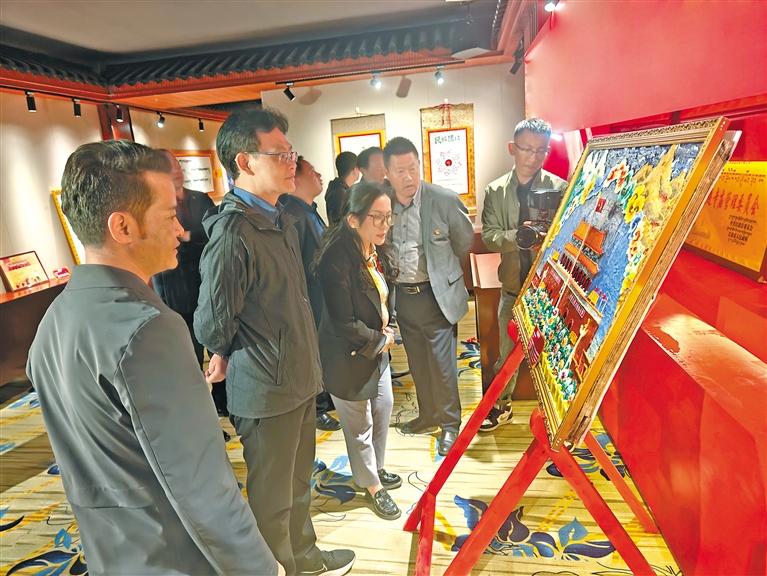 圖為應(yīng)邀嘉賓在參觀作品。記者 楊子彥 攝