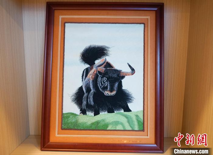 圖為中心內展示的湟源皮繡作品。馬銘言攝