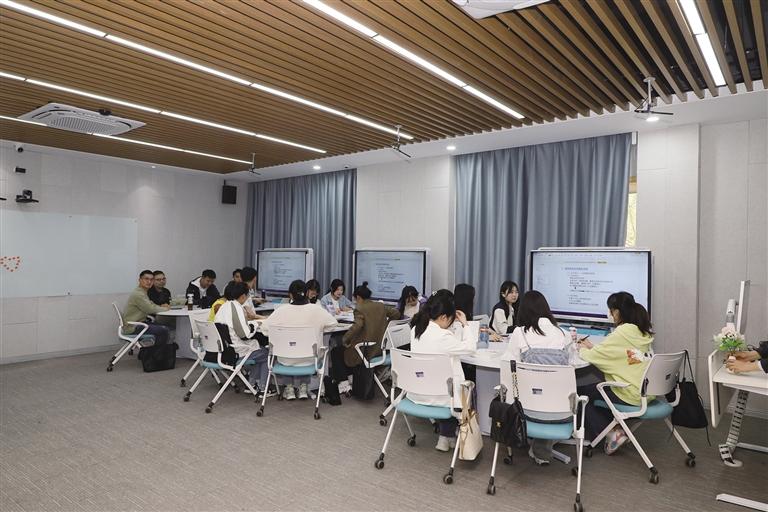 智慧課堂上,老師可以一鍵發(fā)起,將隨堂小測(cè)試發(fā)布到學(xué)生手機(jī)上,學(xué)生按要求在限定時(shí)間內(nèi)作答,結(jié)果會(huì)實(shí)時(shí)顯示在教師終端,老師可以第一時(shí)間知曉學(xué)生對(duì)新知識(shí)的掌握程度,隨時(shí)調(diào)整教學(xué)節(jié)奏。信息工程學(xué)院教師趙雪嬌說:“傳統(tǒng)的課堂大多是幾位活躍的同學(xué)與老師互動(dòng),現(xiàn)在通過線上搶答、頭腦風(fēng)暴、答疑等功能,老師可以帶動(dòng)全班學(xué)生參與到課堂中,得到同學(xué)們對(duì)于課程掌握程度的實(shí)時(shí)反饋和評(píng)價(jià),從原來老師一個(gè)人的單聲道知識(shí)傳授到現(xiàn)在全員參與的立體聲,課堂氛圍活躍了不少。”學(xué)生通過研討式教學(xué)可以不斷提升溝通表達(dá)能力、團(tuán)隊(duì)協(xié)作能力、邏輯思維能力等。