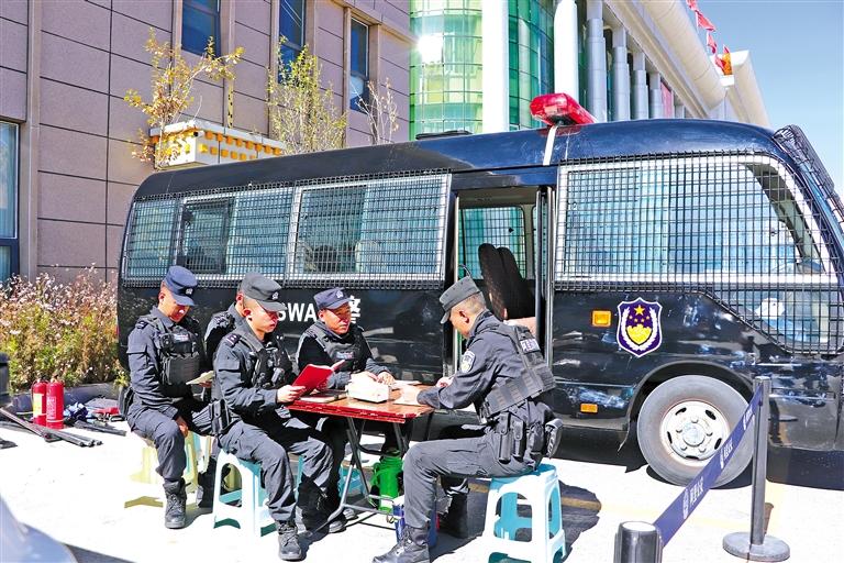 執(zhí)勤民警利用工作間隙開展主題教育學(xué)習(xí)研討。記者 達(dá)珍 攝