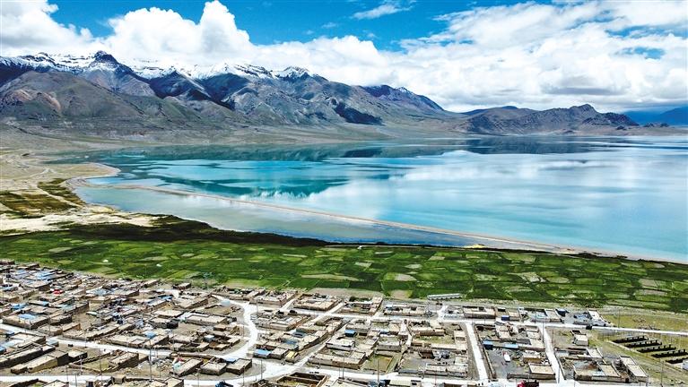 主題教育開展以來,西藏各級各部門深入貫徹落實習近平生態(tài)文明思想,著力創(chuàng)建國家生態(tài)文明高地取得顯著成效。這是那曲市尼瑪縣文布北村,當穹錯碧藍清亮的湖水與湖畔的村落相映,構(gòu)成了一幅人與自然和諧共生的美麗畫卷。(無人機拍攝) 記者 趙書彬 攝
