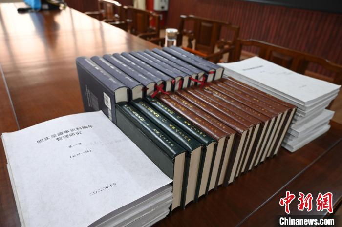 圖為西藏民族大學館藏的明清實錄藏族史料研究成果。趙朗 攝