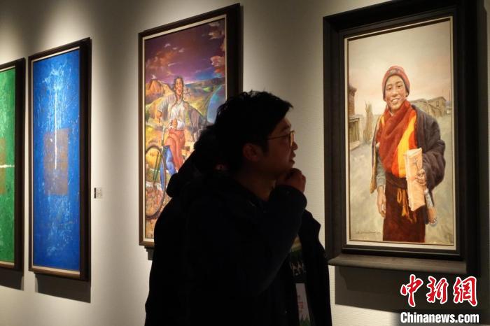 圖為觀眾正在欣賞展覽中的美術(shù)作品。澤塔雍措 攝