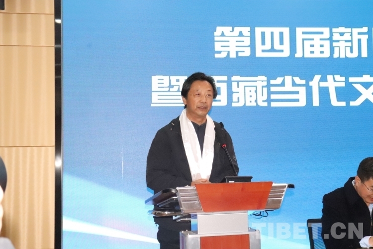 圖為西藏文藝評(píng)論家協(xié)會(huì)秘書長(zhǎng)李洪川作主題發(fā)言