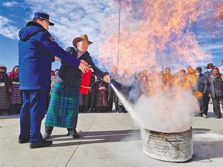 活動(dòng)中,隊(duì)伍各級積極制作藏漢雙語宣傳彩頁、海報(bào)、宣傳冊、宣傳袋等“消防禮包”80余萬份,聯(lián)動(dòng)消防志愿者通過“走街串巷”的形式深入轄區(qū)“九小場所”、沿街門店、居民樓院等廣泛發(fā)放,并采取“面對面”宣傳講解、“一對一”互動(dòng)交流等方式,向廣大群眾傳授防火基本常識(shí),教授如何正確使用滅火器、如何撲救初起火災(zāi)、如何逃生自救等。在開展宣傳的同時(shí),“火焰藍(lán)”和“志愿紅”還進(jìn)村入戶,幫助群眾查找火災(zāi)隱患,講解隱患存在的嚴(yán)重危害性,切實(shí)提高群眾的消防安全意識(shí)和自防自救能力。
