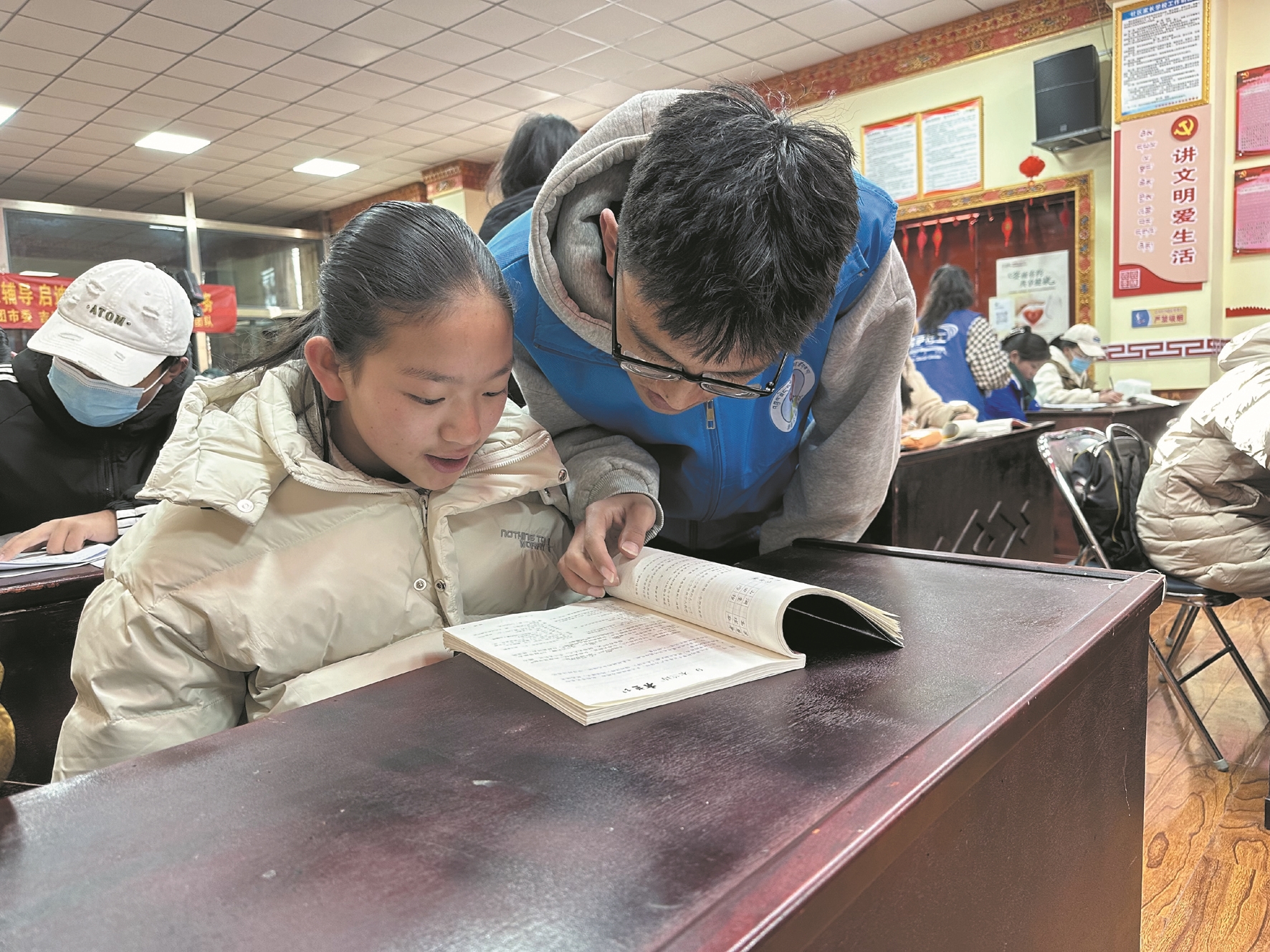 寒假期間,不少家長(zhǎng)因?yàn)闆](méi)辦法輔導(dǎo)孩子的日常學(xué)習(xí)而感到苦惱。前不久,吉崩崗街道聯(lián)合市團(tuán)委、摯善公益團(tuán)隊(duì)在熱木其社區(qū)居委會(huì)里設(shè)立了一個(gè)臨時(shí)“教室”,為轄區(qū)孩子們提供為期一個(gè)月的課業(yè)輔導(dǎo)志愿服務(wù)?,F(xiàn)場(chǎng),返鄉(xiāng)大學(xué)生志愿者們變身為一名名“小老師”,耐心幫助孩子們解決學(xué)習(xí)難題,輔導(dǎo)的課業(yè)涵蓋了小學(xué)、初中的所有科目。除了教作業(yè),志愿者還組織孩子們開(kāi)展演講比賽、書(shū)法比賽等活動(dòng),充實(shí)了孩子們的假期生活。