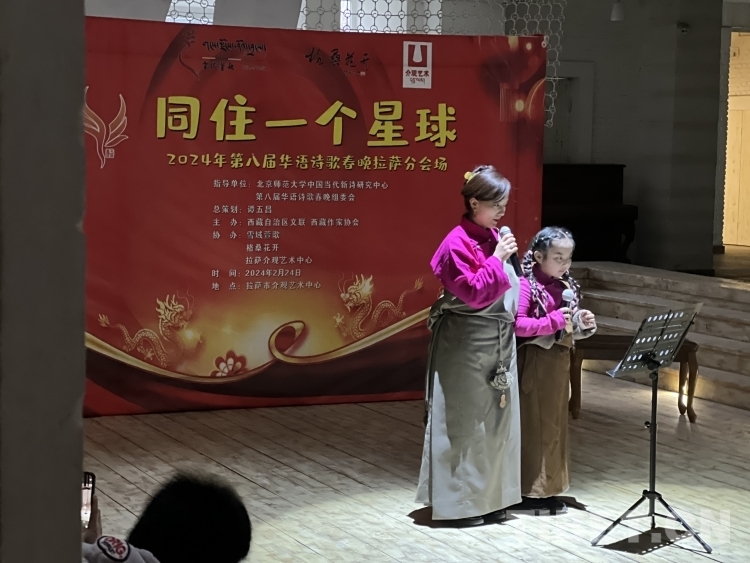 中國(guó)西藏網(wǎng)訊 2月24日元宵節(jié)之夜,以“同住一個(gè)星球”為主題的“2024年第八屆華語(yǔ)詩(shī)歌春晚拉薩分會(huì)場(chǎng)詩(shī)歌朗誦會(huì)”在拉薩介觀藝術(shù)中心舉行。此次活動(dòng)由西藏作家協(xié)會(huì)主辦、雪域萱歌、格?;ㄩ_(kāi)、拉薩介觀藝術(shù)中心協(xié)辦。